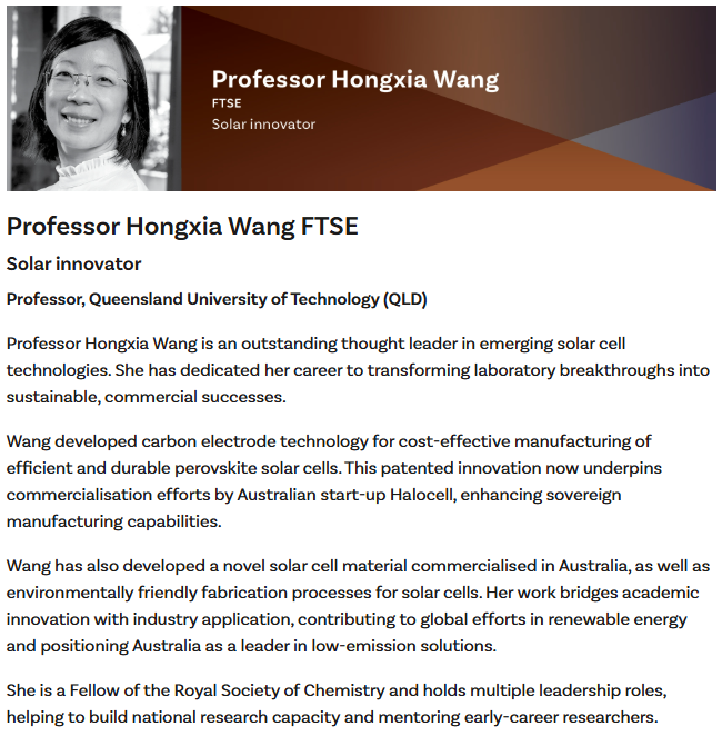 Professor Wang’s pioneering research in perovskite and next-generation solar cell technologies has made a significant impact on the renewable energy field, bridging fundamental science with practical applications and industry translation. This recognition is a testament to her dedication, innovation, and leadership in advancing clean energy solutions.